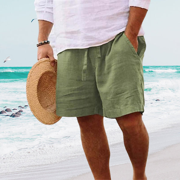 Strandshorts i bomullslin for menn