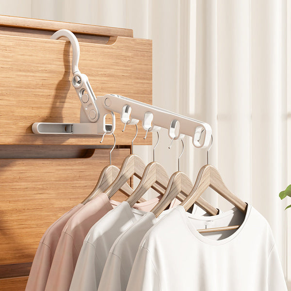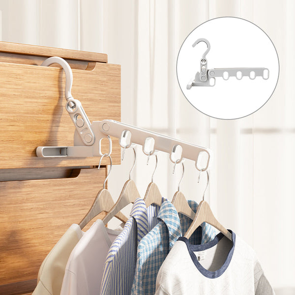 [Multifunctional Design Hanger] The hook can be rotated, it can be applied to various wardrobe rods. The 5‑hole hanger can be used as a closet organizer, and the arm can be folded when not in use to increase storage space. Very suitable for small laundry rooms, closets, dormitories, bedrooms and other limited spaces.