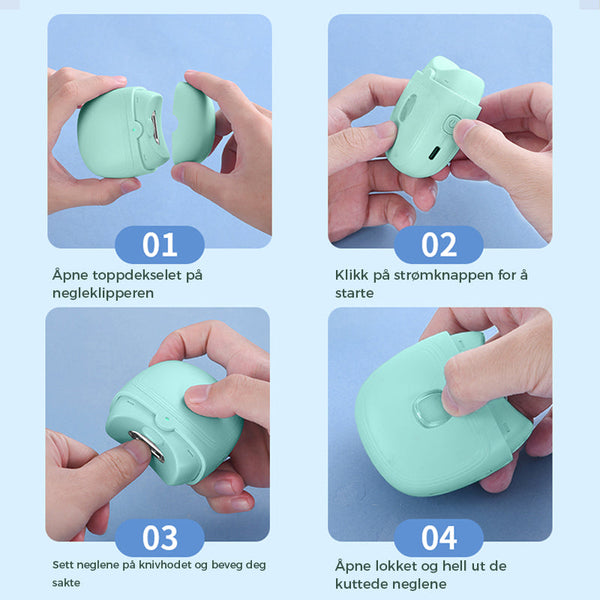 NEGLESPÅRORGANISATOR: Søt elektrisk negletrimmer med en neglesponorganisator, du trenger ikke lenger å bekymre deg for at neglespon flyr overalt, og du trenger ikke å rengjøre stedet etter å ha klippet neglene dine