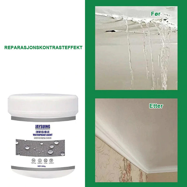 Med ultrahøy bindestyrke er midlet spesielt ideelt for øyeblikkelig å løse vanninfiltrasjon fra vegger, tak, toalettrør, tak, vinduskarmer og mer.