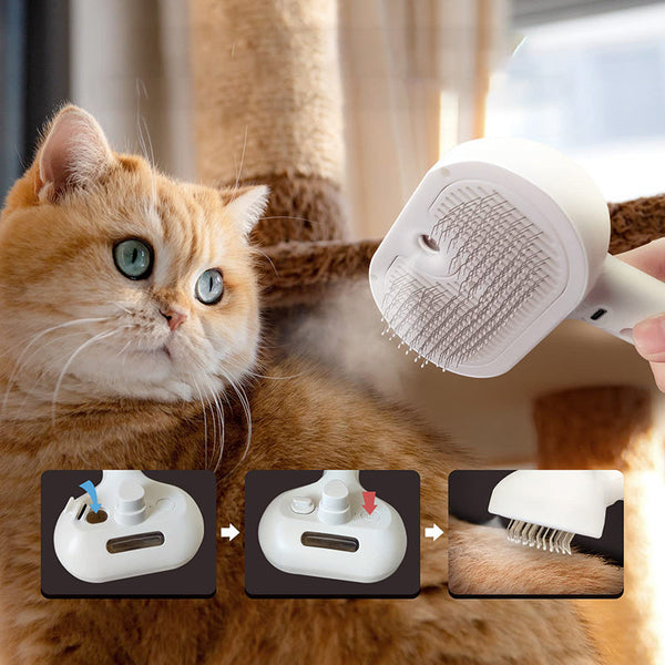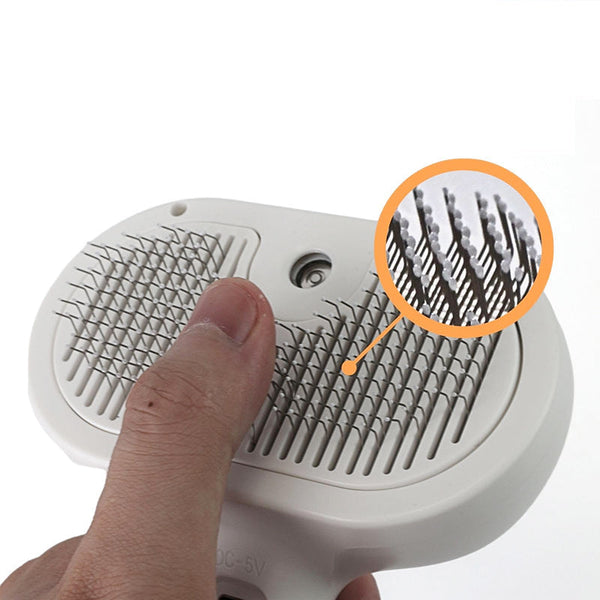 Sprayfunksjon for Silkeglatt pelsstell: Vår Spray Cat Brush kombinerer bekvemmeligheten med pelsstell med den ekstra fordelen av en fin tåkespray, og gir en luksuriøs spa-nivå pelspleieopplevelse for kjæledyret ditt. Den tette sprayen sikrer jevn børsting, reduserer knuter og floker mens den forhindrer spredt pels, og gjør pelspleiesesjoner til en lek.