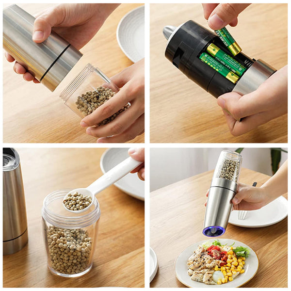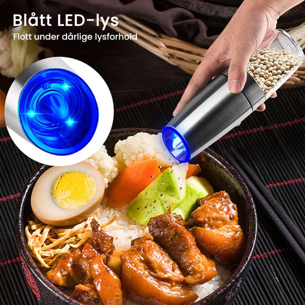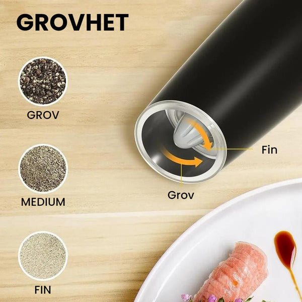 ăJusterbar grovhetă: Det elektriske salt- og pepperkvernsettet har justerbar grovhet, og gir den perfekte malingen for ethvert krydderbehov, fra fine til grove teksturer.
