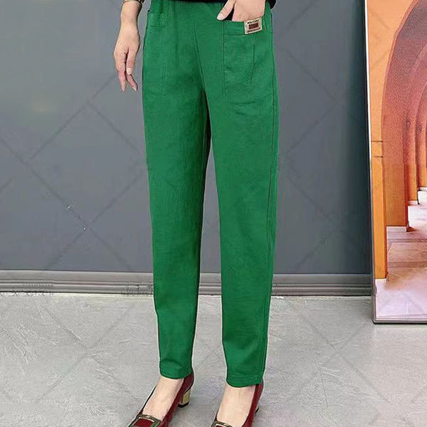 • 1 * Kvinnenes elastiske midje bomullsbukser