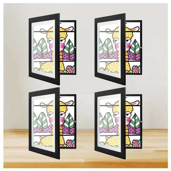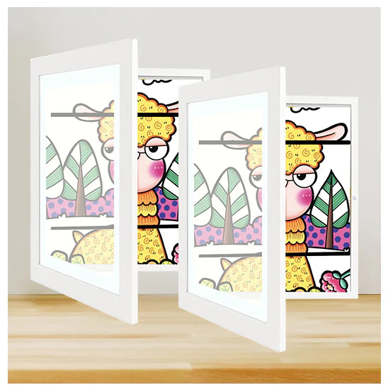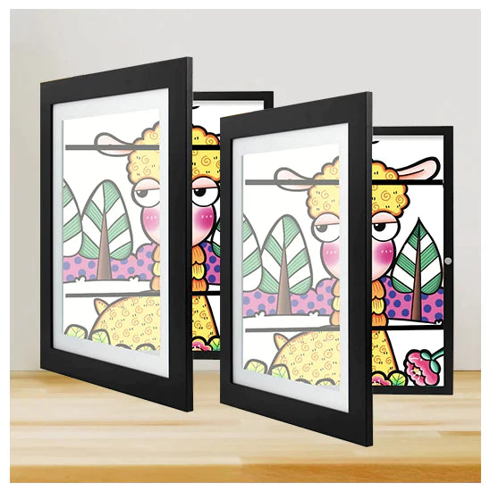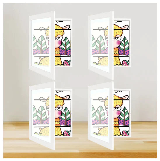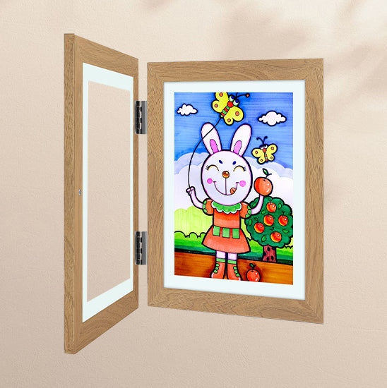 Design: 10x12,5 tommers rammer, perfekt for barnets elskede kunstverk. Rammene kan åpnes og lukkes som en bok, uten matte og faste spiker. Glatt og vil ikke skade hånden.