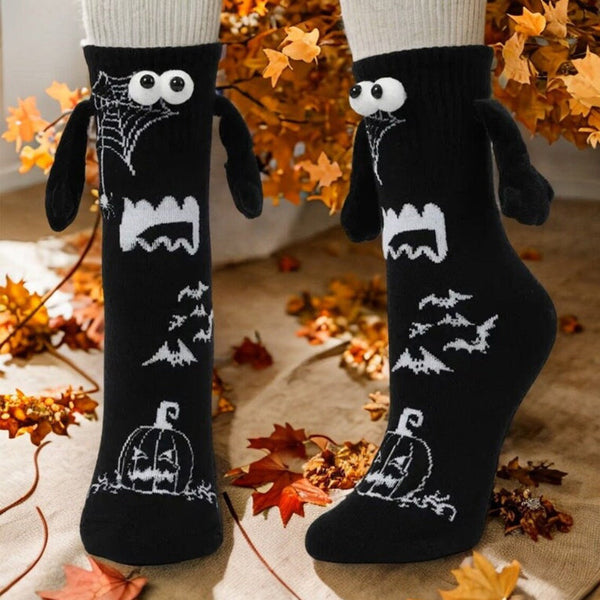 • Julemagnetisk sjarm: Utsmykket med et par bedårende filtøyne og utstyrt med magneter på hendene, tilbyr disse sokkene en unik julesjarm. Når to hender kommer sammen, skaper magnetene en herlig håndholdt effekt, og legger til et snev av festlig moro til antrekket ditt.
