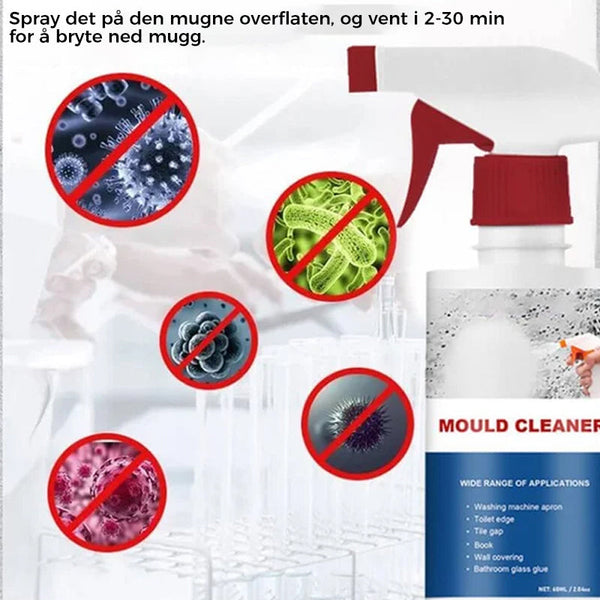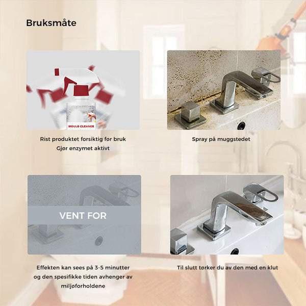 • BLI KVITT MED STANSKE MØGG- OG MØGGFLEKKER: Vår instant-sprayrens fjerner flekkene som er igjen fra svartmugg og mugg. De har en tendens til å etterlate seg stygge flekker som kan gå dypt under overflaten.
