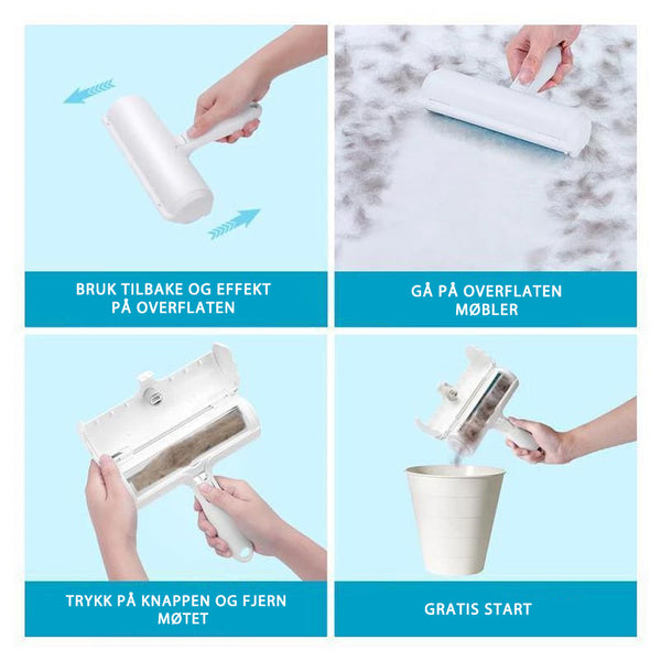 INGEN BATTERI ELLER STRØMKILDE KREVES: Bare bruk korte frem og tilbake slag med rullen for å fange alt dyrehår og lo i støvbeholderen.