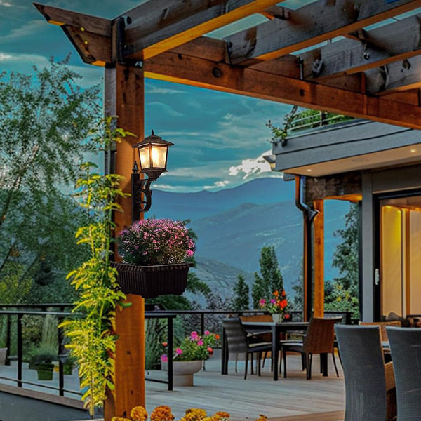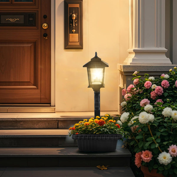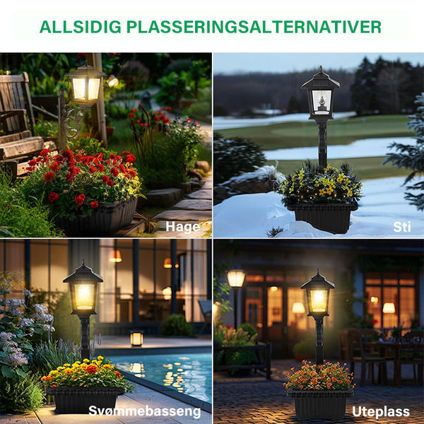 Den soldrevne blomsterpotte-gatelykten er en multifunksjonell utendørs belysningsløsning som kreativt integrerer solcellebelysningsteknologi med dekorativ landskapsarbeid.