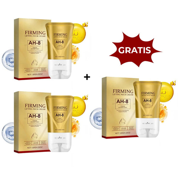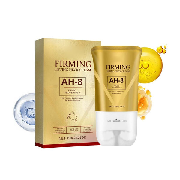 Vår rullende halskrem er en revolusjonerende hudpleieløsning utviklet for å gi næring, stramme opp og forynge den delikate huden rundt halsen.
